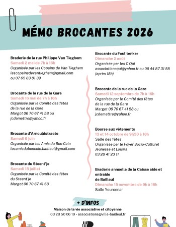 Pour n'en louper aucune à Bailleul, vous trouverez ci-dessous le mémo des brocantes 2026.